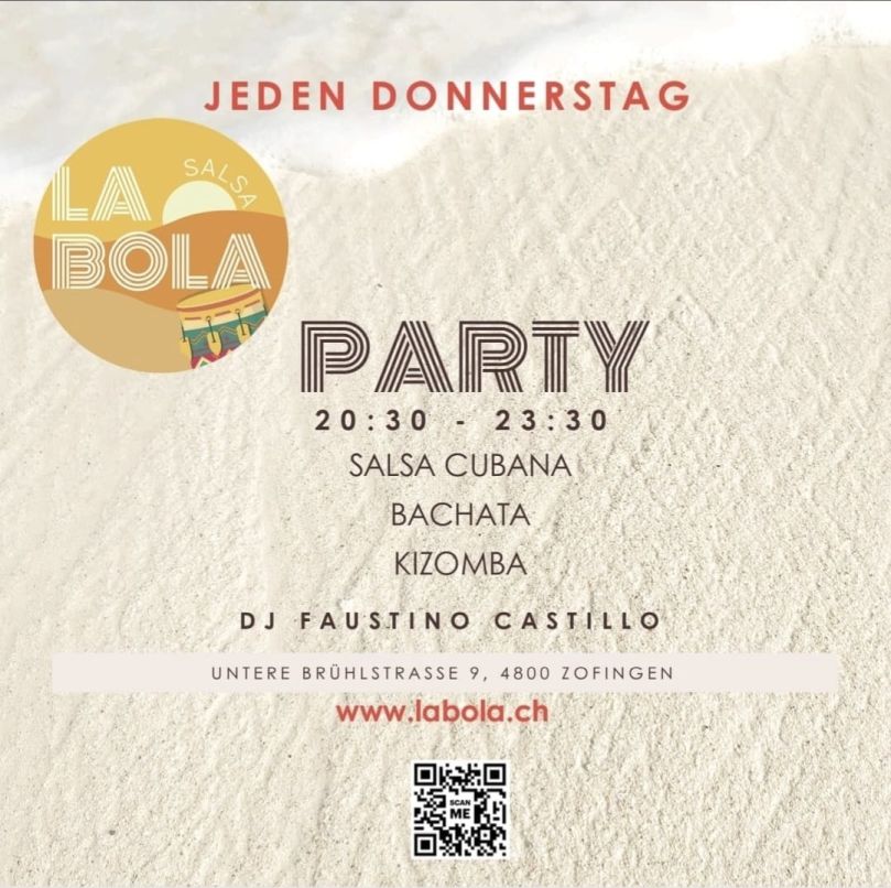 Prima üben kann frau/man bei La Bola in Zofingen. Jeden Donnerstag läuft Salsa Cubana, Bachata und Kizomba, siehe Flyer weiter unten. Andrea und Andy empfangen euch herzlichst 🫶🏼