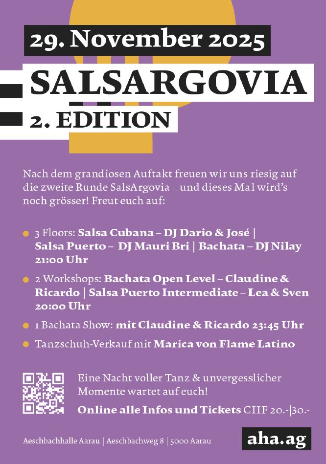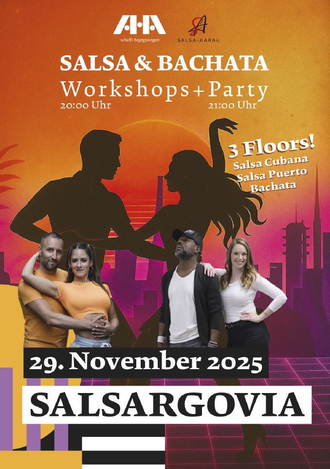 SAVE THE DATE: SalsArgovia Party die Zweite mit 3 Floors (Cubana, Puerto, Bachata/Kizomba) am Samstag 29. November 2025