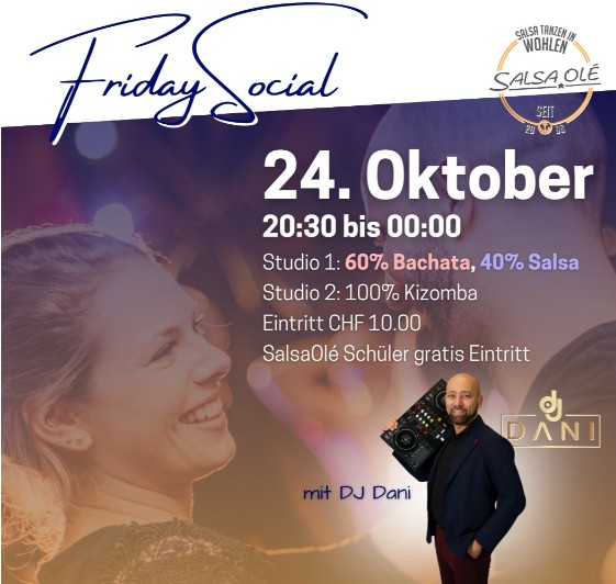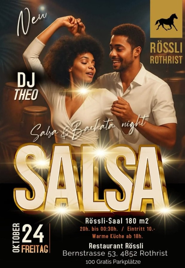 | Freitag | 24.10. | Friday Socials Salsa Olé Salsa & Bachata Rössli Rothrist Fiesta Bachata Silbando | |