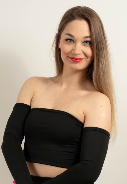 Kaja, Bachata Lehrerin, liebt das Tanzen und hat ihr ganzes Leben lang getanzt. Alles begann, als sie noch sehr jung mit ihrem babyrosa Tutu-Rock durchs Wohnzimmer tanzte. Von jahrelanger rhythmischer Gymnastik ging es weiter zu Hip-Hop, Reggaeton, Breakdance, Ballett für Erwachsene, Streetjazz, Gesellschaftstanz und so weiter, bis sie sich in Bachata verliebte 💗